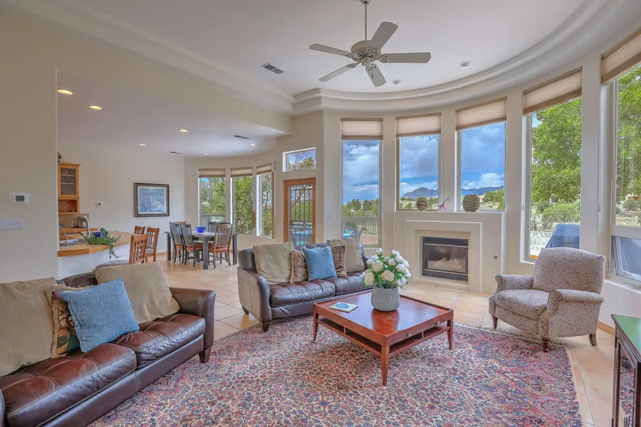 Great Location, Great Views! Beautiful Scott Patrick Home nestled in a Cul-De-Sac location, backs onto open space w/ Awesome Mtn Views. This 3+ bedroom home features a nice open floor plan, light & bright w/ beautiful views of the Sandia's. Open kitchen features upgraded stainless appliances. Living area hosts tall ceilings, gas fireplace & views. Master bedroom features a walk out to back patio, full bath, separate shower, jetted tub & large closet. Enjoy 2 addition bedrooms & office/possible 4th bedroom. Enjoy wonderful outdoor living, courtyard in front & updated patio in back w/views. Home offers many updates including newer roof, stucco, radiant heating system just to name a few. (see attached list) Nice sized 3 car garage. Don't miss this rare offering in High Desert