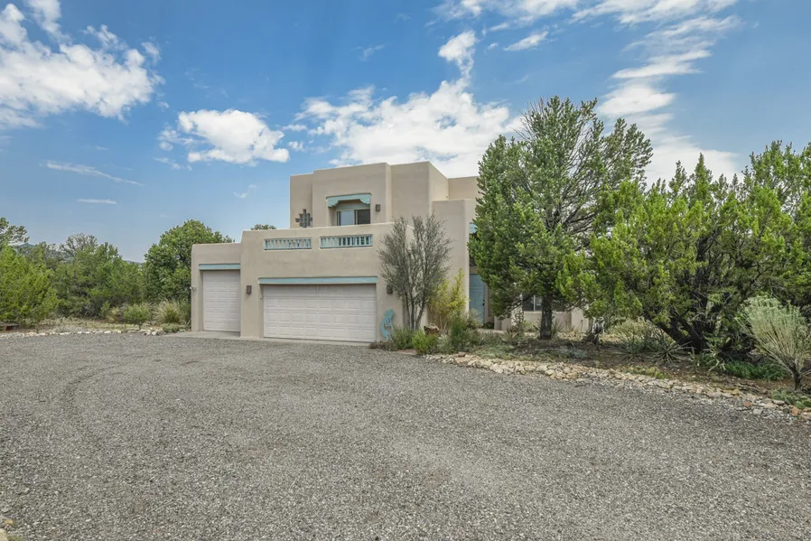 Welcome to this 1995 custom home by Elan Homes, designed and built for the original owner and rich with unique features. A grand Santa Fe Door welcomes you into a light-filled living space with a custom fireplace, exposed wood, and adobe accents. The open kitchen, breakfast area, and informal family room featuring a 2nd custom fireplace flow to a covered patio. A lower-level bedroom with a separate entrance and a close-by 3/4 bath offers flexibility. Upstairs includes a spacious main ensuite with panoramic views, two more bedrooms, a full bath, and two view decks. The 3-car garage includes an oversized bay with a raised door and ceiling for mid-size RV storage. A great Paa-Ko value and A must-see!