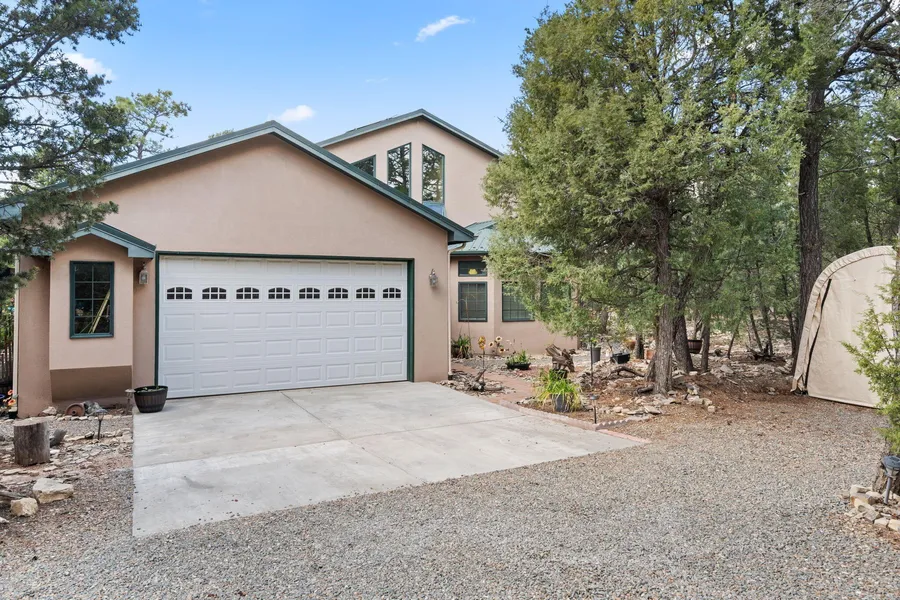$5K SELLER CREDIT to buyer at closing! An Oasis in the forest. Peace and tranquility abound. This custom home was built to last with 2x6 construction and a 6-inch slab foundation. Featuring a bright open floor plan concept perfect for entertaining. Custom pull-out cabinets. Impress your friends with the spectacular window display. The master bedroom is at ground level and so is the 0ffice/4th bedroom. Take a look out the 2nd story balcony and the lush two acres that come with the property. The garage is oversized and has extra high ceiling height for stacking and 220 EV. The house features custom wood touches throughout and an impressive copper tin lighting package. Owned solar keeps the utility bills low. Workshop in the back with 110V. Lots of wildlife and birding to keep you company.