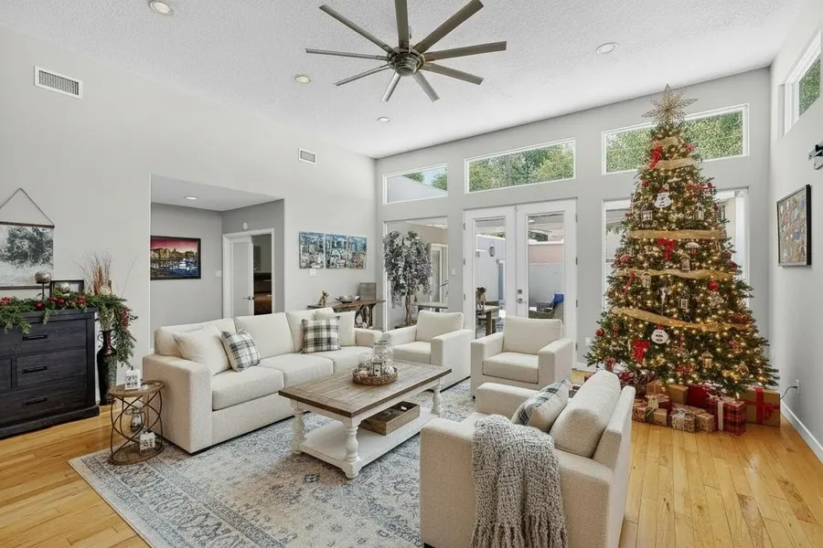 Experience upscale living in the prestigious Albuquerque Country Club! This beautiful home showcases refined finishes in every detail. 2 spacious living rooms are divided by a stunning gas fireplace, plus a versatile flex room ideal for gym, office, or play, Brazilian walnut sliding door for privacy accented with plantation shutters. Gorgeous oak & tile flooring throughout. Gourmet kitchen impresses with custom soft-close cabinetry, quartz countertops, center island & pro-grade appliances. A butler's pantry adds convenience with sink, wine fridge, walk-in pantry, folding counter & excellent storage. The primary suite is a serene retreat with spa-style bath & large walk-in closet. Enjoy the private casita (209/sf) w/half bath & mini-split. Owned solar delivers added efficiency & savings.