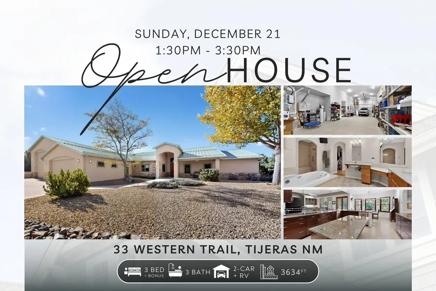Rare opportunity in Sandia Mountain Ranch for this one-owner, single-level custom beauty on 2 acres, just minutes from Albuquerque. 3634 SF, 3BR + Office, 3 baths and a 2204 finished and insulated garage, workshop and 60' X 17.75' RV garage. The owner spared no expense when building this home - it has so many incredible features. Large cook's kitchen with Kitchen Aid appliances, convection ovens, custom cabinetry with full-extension pull-out drawers, warming drawer, 2 pantries, 3 cm thick granite countertops and a large center island. 3/4'' solid red oak floors in main living areas, dining, halls and bedrooms, natural cork in the kitchen and ceramic tile in wet areas and entry. No carpet in home.