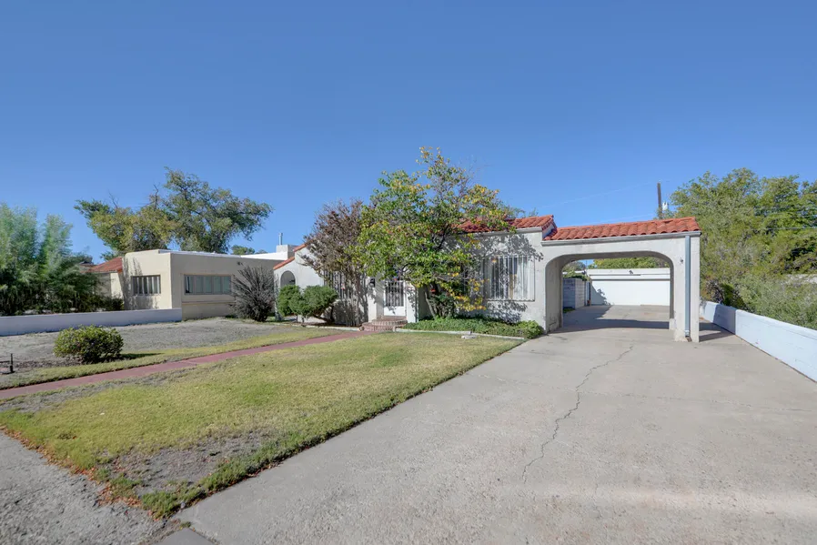 Vintage charm in the heart of the beautiful Albuquerque Country Club area! This 2 bedroom home with a dedicated office offers timeless character and thoughtful spaces throughout. Beautiful wood floors and separate dining room perfect for entertaining! Detached 2 car garage plus a 275 sf workshop. Near the Albuquerque Little Theater and near Old Town too! Roof replaced 2022, heating and cooling replaced in 2021, water heater in 2023 and stackable W/D in 2022.