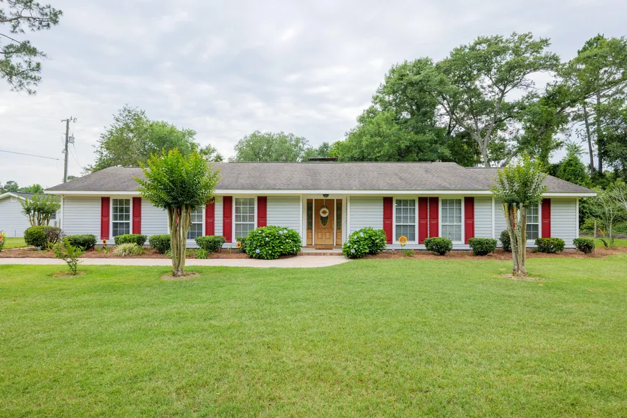 Is a RANCH style home with a MOTHER-IN-LAW SUITE, IN-GROUND POOL, on an ACRE appealing to you? HERE IT IS! This home has received METICULOUS CARE inside and out! Follow the freshly updated brick walk from the driveway to the front entry. The back has a shady trellis of honeysuckle for relaxing in the shade by the pool. The pool features a serene waterfall! Float around and tan while cooling off from the S. GA summer heat! Step through the beautiful wooden front door onto the porcelain tile flooring (throughout) and admire the unique free standing brick fireplace which separates the large living room from the solarium; a sunny spot great for plants! Through the French doors, the MIL suite is a perfect place for an additional house guest or make it an entertaining space or a place for your favorite hobby! It has a large alcove for relaxing and reading or taking a nap, with built in...