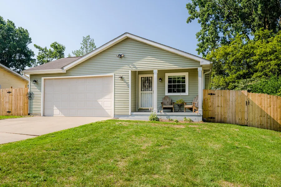 Looking to sit on the front porch of the Sage Belle? Or the back porch overlooking a pond and peaceful open fields during the evenings? Cool tones illuminate the inside of this modern built home and newer windows let in an abundance of natural light. The light golden floors sprawl through, broken up only by the white porcelain tiles in the kitchen and bathrooms. Equipped with ample cabinets and a huge island eating area plus dining, the vaulted kitchen comes with all appliances and the washer and dryer are hidden in a closet. The tall living room has a massive picture window, a wooden built-in desk and the perfect central wall for hanging an ambitiously large TV. Main bedroom comes with the ensuite bathroom, a vast walk-in closet and a slider with privacy blinds that gives access onto the back covered porch. The back porch leads out into the completely fenced-in yard, perfect for keeping the critters and children in and everyone else out. There's an egress window for the full and tall