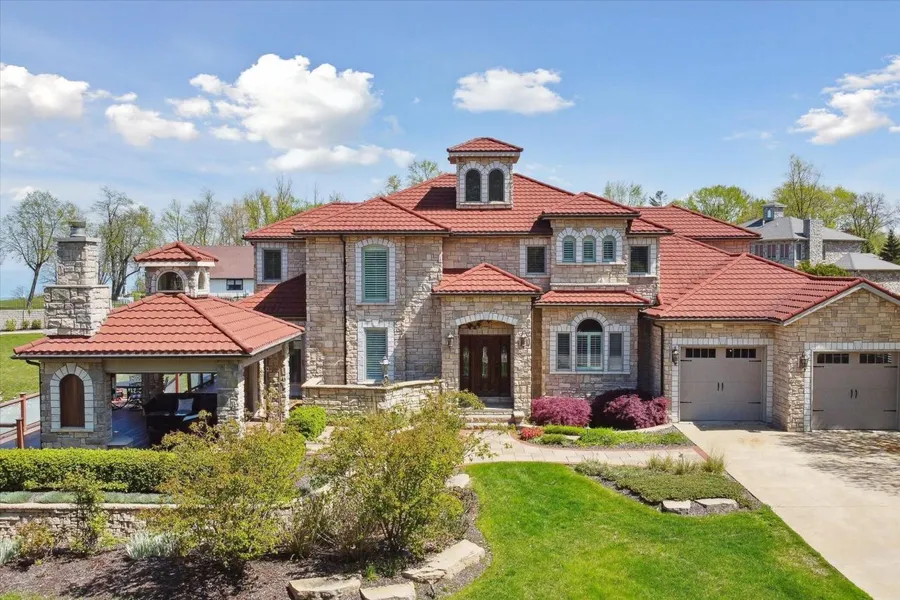 Palazzo Sul Lago (Palaces on The Lake) ~ Living your Best! Located on 8.5 acre private gated community! Private cabana with inground pool! Over 500 of waterfrontage. Breath in the Sunshine and view of Lake Michigan. Tuscan Designed with Grand Open Foyer sky entrance with baby grand piano on upper level. Walnut, marble floors. Private study includes desk, built in shelves. Great room with walled windows that allow natural light overlooking Lake Michigan. Kitchen includes custom cabinets with hard surface counter tops center island with 2nd sink. breakfast nook. Main floor bedroom suite. Upper level Primary suite with amazing view of Lake Michigan custom furniture, designer closet includes private sitting area with balcony, bath with heated floors, walk in shower, jetted tub, second laundry area. Entertain in lower level walk out with full service bar, includes a kegerator. Cozy fireplace....
