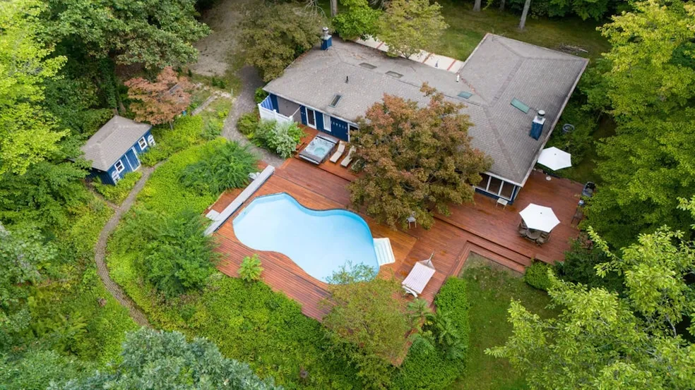 Discover Third Coast Ranch, a thoughtfully designed three-bedroom home tucked back on nearly five acres of woods between Harbert, Sawyer and Three Oaks. This idyllic property features an in-ground heated pool, hot tub, serene pond, and lush gardens all set on a quiet country road. A successful vacation rental, this home comes fully furnished. Enjoy year-round relaxation on the screened porch or gather in the spacious dining area, perfect for hosting up to 12 guests. The chef's kitchen, complete with modern amenities, is ideal for entertaining or everyday living. The primary suite is a private oasis with a king-sized bed, ensuite bath, wood-burning fireplace, and Peloton bike. Two additional bedrooms offer flexible accommodations for family or guests. Outdoor enthusiasts will love the proximity to Cherry Beach, scenic trails, and Harbor Country's wineries, breweries, and farm stands. W...