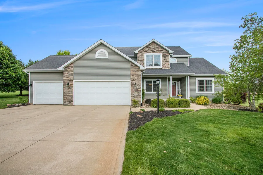 Immaculate and move-in ready, this stunning 4-bed, 3.5-bath home features soaring 18' ceilings, a main-floor primary suite, new granite kitchen counters, gas fireplace, and 3-car garage. Upstairs offers 2 bedrooms, a full bath, and a spacious loft; ideal for an office or easy conversion to a 5th bedroom. The finished basement boasts a 4th bedroom, full bath, daylight windows, abundant storage, and entertainment space. Enjoy St. Joseph River access with 12 miles of water fun between the two dams. Add your own dock or rent one that is already there! Just talk to the HOA. Beautiful landscaping and underground sprinklers complete this peaceful, well-kept retreat.