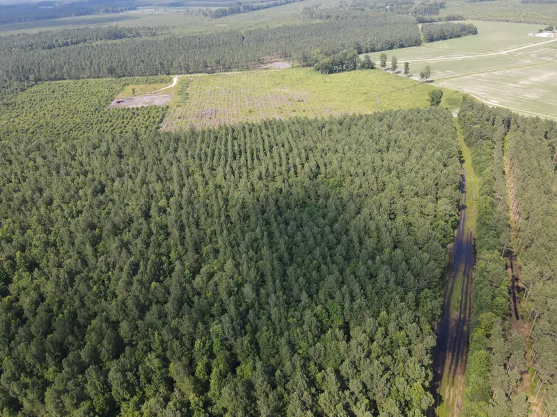 Small area cleared for pasture 89.03 Aces. total land with approximately 13 Aces. Cutover and the remaining in thinned Pine probably 20 years old +-