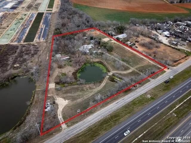UNRESTRICTED LAND +/- 5 acres off I-35 Frontage! This property offers a beautiful slate for you to build your dream home or set up your business. Tank on the property is fed by the nearby irrigation farm. Septic is in place and other utilities are available on-site.