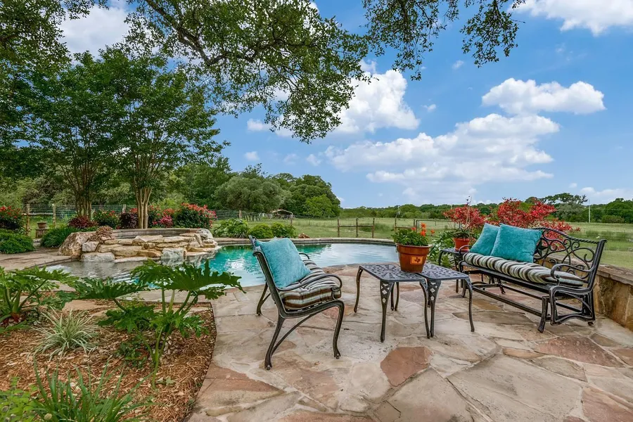 IMPROVEMENTS: Amazing private 12 acres conveniently located in Fair Oaks Ranch Golf Course Community. Ranch style, one story, plus 800 sf apartment above garage. High ceilings, open living space, 3 fireplaces. Spacious kitchen with large pantry, two nooks for coffee and wine bar. Master with spacious closet, private bath, sitting area with access to outdoor kitchen, patio, fire pit, pool and hot tub. Ag barn with chicken coop and fencing for 4H projects. Horses allowed. Raised bed gardens, lush landscaping.