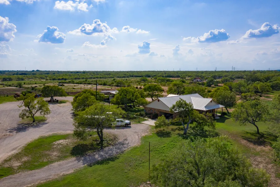 This unique hard to find property located South East of San Antonio, with a custom home and custom pool situated on 68+/-Acres. This beautiful custom home features hill country rock on the exterior, 2 master bedrooms, 2.5 baths a spacious open floor plan with granite countertops. Enjoy the wonderful patio with huge cedar post overlooking pool and country views. The property is rectangular in shape, 499ft wide and 2770ft deep. All contiguous neighbors are similar or larger in size. The entire perimeter is fenced and cross fenced with several traps to work or hold livestock with cattle feeders and shoots. Comes with a exceptional full stock pond ideal for fishing and dove hunting. A spacious open 60 X 40 covered barn and storage containers. Property also includes a doublewide 3bdrm 2 bath manufactured home with separate septic system. Ag exempt and outside city limits with tons of potential.