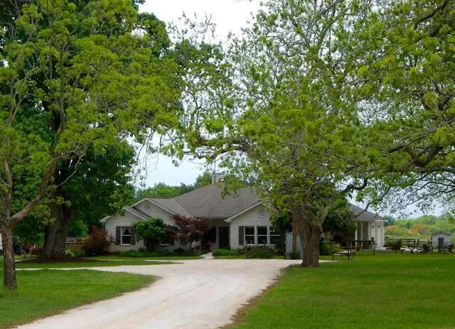 Improvements: From the moment you enter the property through the electric automatic gate with a security keypad for visitors entry you cant help but feel at home. Large trees and beautiful landscaping surround the home. Huge sycamore trees, multiple pecan trees and live oaks provide lots of shade and a beautiful setting. The gorgeous home on the ranch is a custom built 2,700 sq. ft., 4 Bedroom / 2.5 Bath all brick home with a 2.5 car attached garage that includes electric openers. The home features an open floor plan with high ceilings and a large living area that includes a wood burning fireplace, custom mantel and slate hearth. The flooring in the home is primarily tile with carpeting in the bedrooms. The island kitchen is a chefs dream with a walk-in pantry, custom cabinets, breakfast bar and a lighted built in china cabinet. The kitchen also includes a range/oven as well as a second built in oven, dishwasher, disposal and a great view of a patio area from the kitchen sink window. There is ample storage area in the kitchen with lots of cabinets and counter space and electricity in the island. The large dining area just off of the kitchen provides a gorgeous view of the front of the property. The master bedroom includes a built in cabinet with a master bath designed with dual vanities, a large walk in shower and a huge master closet with built in cabinets. The home also has a very large utility room with built in drains for the water heater and washer/dryer and a second pantry area. The home is a very modern design with 9-11 ceilings, recessed lighting, security system, built in timers for the water heaters, pre-wired for cable and phones and 2 walk up attic storage spaces with flooring. The home is also very energy efficient with ridge vents on the roof, radiant barrier decking and top quality windows that provide a wonderful country view of the property. The exterior is professionally landscaped with 2 hardy plank covered porches with beautiful country views. The 9 mature pecan trees, oak trees and sycamore trees provide all the shade you could ask for in this gorgeous yard. There is also an established garden area with drip irrigation system.