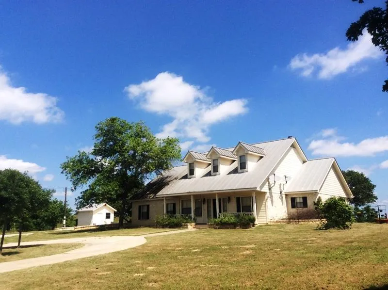 The spectacular views from this gracious three bedroom hilltop home are what truly make it stand out from anything else in south Texas. It is truly an inviting white rock house with three dormers, black shutters and door, standing seam roof, and front planters that you see as you come in the circle drive. The hilltop has oak and pine trees with miles of views, even to San Antonio.