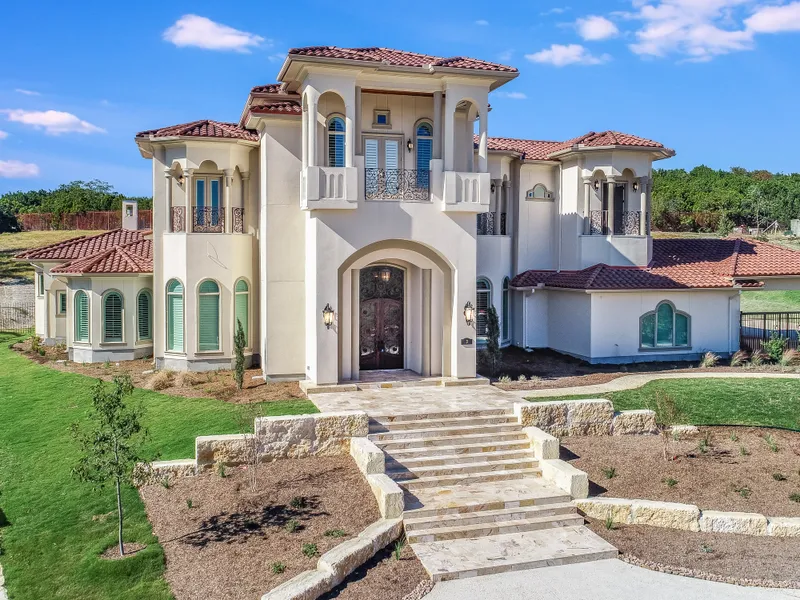 Perfectly situated on a 1.12+/- acre cul-de-sac lot this estate boasts an ideal floor plan for entertaining while offering the finest materials and European architectural details throughout: Luxury and refinement surround you. Marble floors, soaring ceilings and voluminous rooms are the theme throughout, 20' hand carved travertine fireplace, handmade elegant chandeliers were specifically designed for this home, custom wrought iron works door and hand railing. Kitchen offers Viking appliances with gas cooking, dual ovens, wine refrigerator, custom Michael Edwards cabinetry, and exquisite countertops. Expertly proportioned principle rooms include the owner's wing with private entry boasts a master bedroom gas fireplace, sitting area, private entrance, dual closets, spacious luxurious spa bath. Secondary bedroom on first floor. All bedrooms have their own private bathrooms and Juliet balconies. Two half baths located on opposite sides of the house service office and the other for the pool and outdoor area. Separate office/flex room has custom built-ins and is convenient to one of the half bathrooms. Take a ride in the elevator or enjoy the lavish view as you ascend up the staircase to the second floor here you will find 3 additional bedrooms, game room, and multiple balconies overlooking spectacular long range views. Outdoor living space overlooks heated pool, spa, and private backyard with fully fenced yard. The Covered outdoor area is massive providing ample room for entertaining and pre-plumbed for outdoor cooking. Electronic gate opens to the motor courtyard featuring an oversized 4 car garage with insulated doors, great storage and a tremendous amount of room for parking.