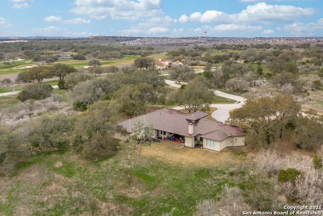 This one-of-a-kind estate is nestled in lovely Briggs Ranch, a guard-gated community approx. 20 minutes west of downtown San Antonio. Owners will enjoy elevated everyday living perfectly paired with the privacy and tranquility that this subdivision has meticulously created (as well as access to the fabulous Briggs Ranch Golf Club). High-end details throughout include a metal roof, stucco and stone exterior, circular drive, side-entry garage, gorgeous double-door entryway, tray ceilings, wide-plank hardwood floors, and a stunning entryway with barrel vault ceiling and wall of sliding glass leading to the well-appointed covered patio. The heart of this floor plan are the open-concept living and dining areas which flow seamlessly into a distinctive kitchen. This culinary arena is fit for any chef with its double islands, commercial-grade gas range, glass tile backsplash, rich cabinetry, stainless steel farmhouse sink, expansive breakfast bar, pot filler, ice maker, and wine refrigerator. The nearby media room is ideal for relaxing at the end of the day or hosting fantastic movie nights. The generously proportioned owner's suite is a true retreat, providing tree-studded views, ample space for a sitting area or desk, and luxe private bath featuring an oversized dual vanity, freestanding soaking tub, and exquisite walk-through shower with three showerheads. Two secondary bedrooms, each with large closets, and two full baths complete the interior. Outside, the covered back patio showcases a cedar-planked ceiling, outdoor kitchen, fireplace, and fabulous views. Come explore this listing today and experience true luxury.
