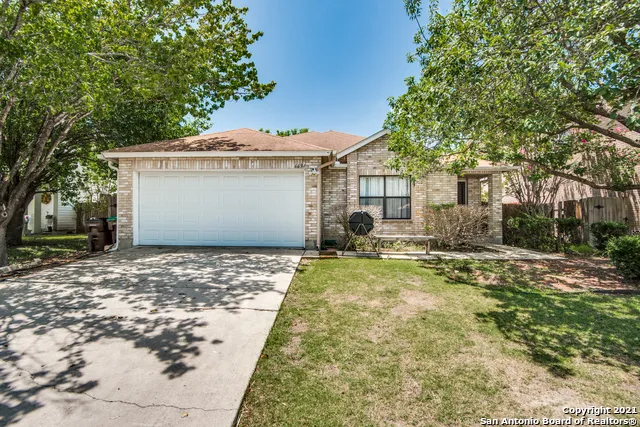 Great Investment Property! This warm and welcoming single story is situated near Converse City Park and Loop 1604, providing lovely curb appeal and mature shade trees. A cozy, contemporary floor plan pairs ceramic tile floors with nicely sized, open-concept living and dining areas. Cook up some fun in the kitchen offering all-white appliances, an island workspace, a great amount of cabinetry storage, and smooth-surface, convection stove. The dining area features backyard access plus the perfect niche for banquet-style seating. Unwind in the large owner's suite with large closet and private bath that provides a tub/shower combo. Two secondary bedrooms and second full bath complete the interior. The privately fenced back yard is another great space to relax with a covered patio and several crepe myrtles. Please note: HVAC replaced 2012, roof replaced 2008 and HW replaced 2019