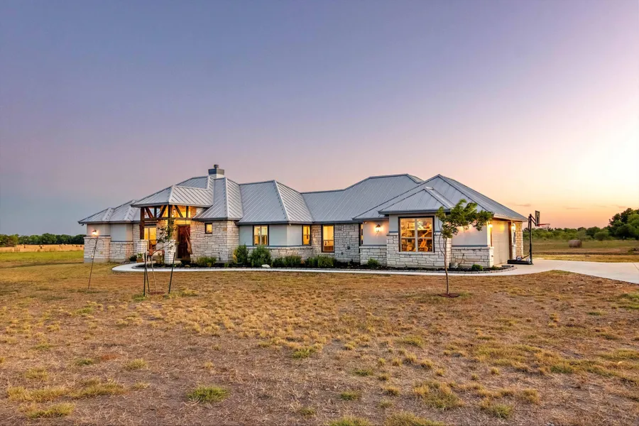 Beautiful, fully custom well equipped home. Open floor plan with high, vaulted/beam ceiling in the living area. Four bedrooms, an office and a flex room plus 3 full baths. The gourmet island kitchen offers a gas cooktop, built-in oven, solid countertops and tile backsplash. A luxurious owner's ensuite awaits with a soaking tub, extended shower, dual vanity and not one but TWO walk-in closets. The large covered patio overlooks the property with 7/8's of the 11 acres being fenced. There's also an oversized 2 car garage w/storage area. Property has a water well and storage tank on site. Home is on city water and there is groundwater also. AG exempt.