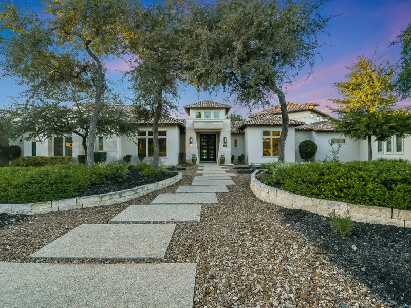 This award-winning single-story masterpiece is positioned perfectly on the 1.19-acre lot to take in the stunning hill country views while maintaining privacy. The over 6,000 square foot home features design elements that showcase the open floor plan with walls of sliding glass doors that seamlessly integrate indoor and outdoor living. The chefs kitchen features top-of-the-line Thermador appliances, an expansive custom island that flows into the living room with soaring barreled ceilings, a stone-wrapped fireplace, and a large breakfast room with stunning panoramic views. The oversized master suite boasts a spa-like bath with a double marble shower, a stand-alone soaking tub, multiple expansive walk-in closets, and an exercise room with outdoor access. Each of the four additional bedrooms features an on-suite bathroom and walk-in closet. The other highlights include the spacious home office that overlooks the pool, coved ceiling dining room, 200-bottle wine rack, and a generously sized game room that boasts a wet bar creating an entertainers dream. The outdoor covered patio is outfitted with a gas grill and custom automatic screens that protect the dining experience from bugs with the press of a button. The resort-like grounds feature an infinity-edge Keith Zars pool and spa, a fire pit, a sports court for pickleball or basketball, and a pollinator garden. Gorgeously designed by Gustavo Arredondo and built by Burdick Custom Homes in 2015, this property must be experienced in person to be able to take in all it has to offer.