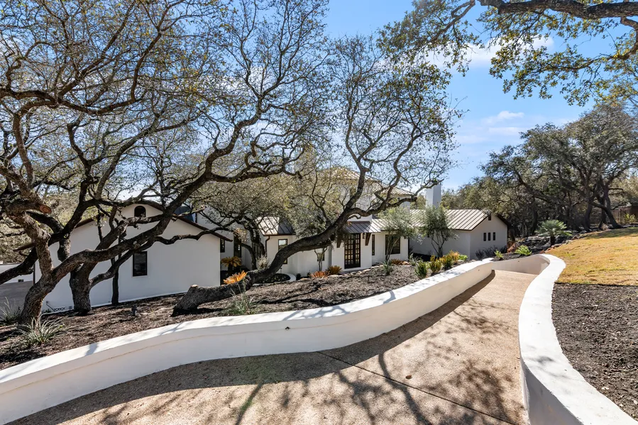 Exceptional! Behind wrought iron gates with complete privacy, majestic hill country views are found on a tree studded 1.26 acre hillside lot. Designed by renowned architect, Gustavo Arredondo, this fully remodeled estate offers modern elements while radiating opulence and warmth with light and bright spaces throughout. Grand entry with two story ceilings greet you. Formal dining with vaulted ceilings and fireplace. Kitchen boasts designer accents, large island, ample storage, Wolf appliances, a dream pantry space with floor to ceiling cabinetry, and opens to the breakfast area and family room. Secondary living room provides space for all. Master wing with study, exercise/flex room, and primary bedroom with vaulted ceilings, fireplace, private patio, stunning bathroom with walk in shower, free standing bath, and closet with built-ins. Secondary bedroom downstairs with en suite bath. Upsta...