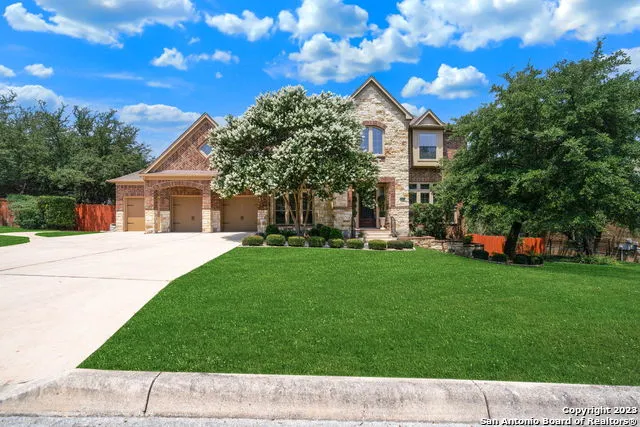 Looking for the perfect place in the Hill Country to call home? Look no further! Come see this stunning Perry Home in the highly sought-after Limestone Ranch in close proximity to Fair Oaks Ranch Golf & Country Club, as well as award-winning Boerne schools. This home boasts nearly 4,900 square feet of luxury hill country living with 4-car garage, 5 bedrooms total (2 en-suites downstairs), 4.5 bathrooms, 2 offices, 3 eating areas, 2 stairways, floored attic that can be converted to extra living space, storm shelter, game room, media room, exercise room, a deck for entertaining, a sports court for basketball, pickleball, etc., a trampoline, a Rainbow Play System, and an amazing/private backyard. Welcome Home! PLEASE VERIFY ALL MEASUREMENTS, DIMENSIONS, FEATURES, INCLUSIONS, EXCLUSIONS, SCHOOLS, ETC.