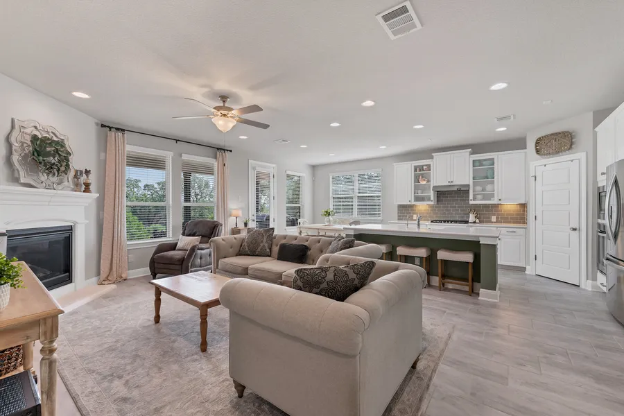 Excellently maintained single story home ready for new owners! Open floorplan with fabulous kitchen complete with island seating, quartz countertops and stainless steel appliances. Your master retreat features upgraded bay window for extra space. En suite bathroom with separate shower and tub, 2 sinks, walk in closet, and connected to the laundry room for easy access. 3 additional bedrooms and 2 full bathrooms. Three car garage has plenty of room for your vehicles and golf cart plus big enough driveway for additional off street parking. Premium cul-de-sac lot with over half an acre that backs up to private property gives you plenty of room for a playset and pool (see pics for proposed pool design). Gated community in desirable Comal ISD, easy commute into SA through Blanco Rd or the newly expanded Hwy 281. Close to shopping, entertainment, hospitals, and highway. Schedule your showing to...