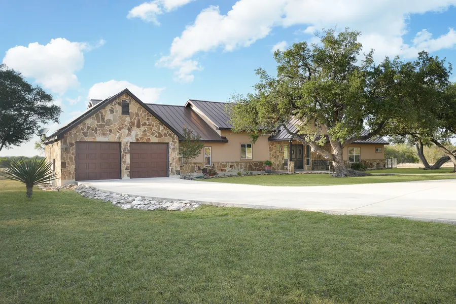 Perfectly tucked away just off of the western edge of San Antonio, this 1.51 acre ranch homestead is a rare offering and as versatile as they come. The property resides in the increasingly coveted community of Ridgeview Ranch. A privately gated association inhabited only by custom built homes situated on 1.5+ acre lots. Country living isn't often so closely accessible to the city! This 3 bedroom, 2 and a half bathroom dwelling features an ever sought after open floor plan with custom cabinetry throughout, and granite/stainless steel accents throughout the kitchen. Heading outdoors you are greeted with multiple entertainment options. A covered patio and cozy fireplace for starters, a gorgeous in-ground pool and hot-tub enclosed by custom stone work and waterfall aesthetic. Last but not least a multi-use outdoor kitchen and BBQ pit with connected storage/pool house room should be the last box on your checklist! This all encompassing backyard is capped off with a backdrop of farmland and beautiful sky views as far as they come. Located just minutes from the city, grocery and shopping, Lackland AFB, The Golf Club of Texas, and more. 849 Private Road 3702 is ready for showings today! (Solar panels are paid off and convey with sale, more info will be provided upon request)