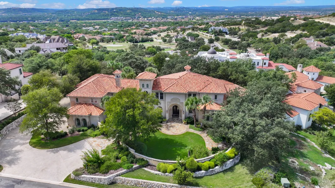 Nestled within the prestigious enclave of "The Vineyard Estates" in The Dominion, this exceptional property, meticulously crafted by the renowned Master Builder and Designer, Linda Colvin, offers an oasis of tranquility and seclusion with breathtaking views. Beyond its gated courtyard entry, discover luxurious amenities, elegant architectural details, and quality materials throughout. The main residence features four bedrooms, four full bathrooms, two powder rooms, and is accompanied by a plethora of versatile living and flex spaces. Spacious kitchen with dual islands, overlooks family room, breakfast area, and wet bar with exceptional views from every angle and is perfect for entertaining. Primary bedroom offers soaring ceilings, outdoor access, sitting room, flex space, generously appointed spa bath, and has direct access to impressive exercise room with floor to ceiling windows. Glamorous staircase leads you to secondary bedrooms, each with full bath, and game room. Enjoy the unparalleled outdoor living space with expansive covered and uncovered patios, while basking in the luxury of your resort-style pool, surrounded by native hardscapes and lush landscapes. Adding to the allure, a separate single-story guest house with two bedrooms and two bathrooms, full kitchen, dining, and living space, offers an inviting retreat and privacy with it's own patio overlooking greenery and pool. Two studio apartments above the garage provide additional comfort and space for all. Oversized 4 gar garage boasts ample storage, and closet that could be converted to elevator housing for apartment access. A whole-house generator, ensures uninterrupted serenity. A masterfully created haven that seamlessly melds classic opulence with contemporary convenience, promises a lifestyle of utmost luxury and exclusivity. Main House 6,209sqft, 4 beds, 4 full & 2 half baths. Guest House, 1,110sqft, 2 beds,2 baths, full kitchen. Additional Living Quarters: 1,292 sq ft apartments, each with 1 bed, 1 bath, and kitchen.
