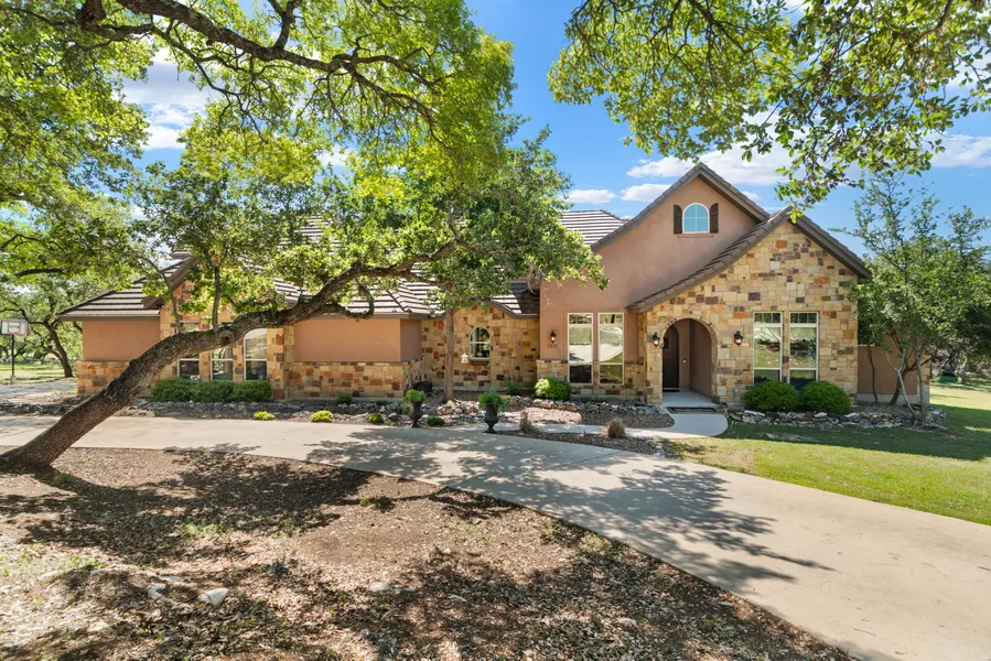 This 3.15-acre single-story haven in The Oaklands offers a slice of the spectacular Texas Hill Country lifestyle. The custom estate is meticulously built, featuring exquisite finishes and craftsmanship. Upon entry, a well-appointed study with extensive custom-built-ins welcomes you. The chef’s kitchen is outfitted with professional-grade stainless steel appliances a granite island with counter seating and a copper farmhouse sink. The spacious master retreat boasts a sun-filled bathroom with custom cabinetry, a walk-in shower, and an oversized closet. Guest bedrooms are generous, each with large closets. Outdoors, enjoy the serenity of a large covered patio, pool, and spa amid pristine landscaping that ensures privacy. The forest of trees behind your property provides a stunning backdrop, creating a true park-like setting. The oversized side-entry three-car garage includes custom built-in...