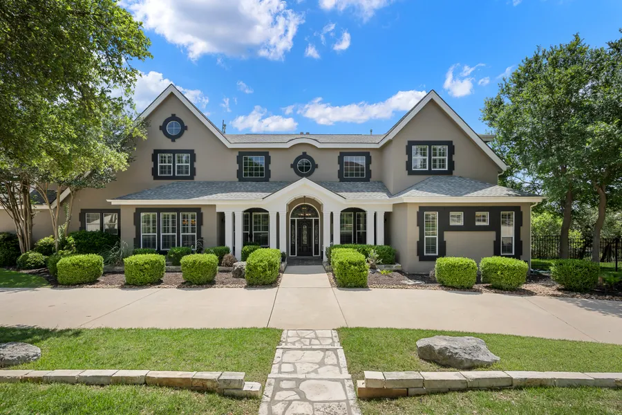 Positioned on a sprawling 0.74-acre lot in the prestigious Estates of Champions Run community in the highly sought-after Reagan High School district, this remarkable two-story home offers a commanding and luxurious presence, complete with 24-hour security guard-gated access. A stunning blend of luxury and functionality, this nearly 5000 sqft estate offers an open floor plan with an abundance of windows, soaring ceiling height, and natural light. With multiple and distinct living areas thoughtfully placed around five bedrooms, this home caters effortlessly to both large gatherings and intimate retreats. The main level features a grand and welcoming entry with a formal sitting area, formal dining, and a stunning family room with a rock fireplace and built-ins. Open access to the updated kitchen brings a modern ease to this functional layout. Prepare to entertain and dine at a high level in...