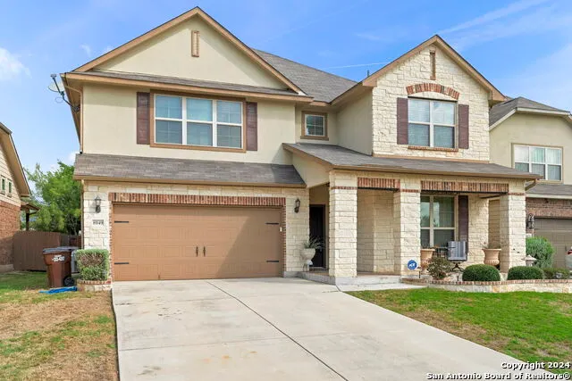 Come and see the best home in the neighborhood with 5 bedrooms plus media room and study, 3.5 bathrooms, 3336 square feet and countless upgrades and updates! A wonderfully landscaped yard with added planter beds that match the exterior welcomes you to a beautiful front covered patio with added tile flooring! An upgraded front door opens into a light and bright home with art niches, and upgraded tile flooring and high ceilings that carry throughout the home! To your right are French doors that lead into a study/office with great natural lighting! The dining area and eat-in kitchen are statement pieces that include a beaded glass backsplash, granite countertops and huge granite island, recessed lighting, plenty of cabinet and counter space for cooking and a large pantry! The large kitchen flows into an expansive living room which features vaulted ceilings, custom blinds which is another great feature throughout the home, an upgraded chandelier and large picture windows with a great view of the private backyard! The spacious master bedroom features a ceiling fan and a large en suite with separate vanities, a separate tub and tiled walk-in shower as well as a large custom-built walk-in closet! Also downstairs is a large laundry room! Upstairs features a beautiful Juliette balcony that overlooks the large living room and the huge upstairs game room is a great additional entertaining space! Upstairs also features 4 spacious secondary bedrooms, a theater room with elevated back row seating, as well as 2 full bathrooms including a jack and jill bathroom! The backyard features a beautiful back patio with upgraded tile flooring, a Farmhouse accent wall, an added ceiling fan and great landscaping that looks out onto the greenbelt with no neighbors in back! Additional lighting also added out front and garage lighting also upgraded! Gutters and shutters added, as well! 3 side masonry exterior with brick and stone! You will not find these custom features in a new home! This beautiful and meticulously cared for home is a must see!