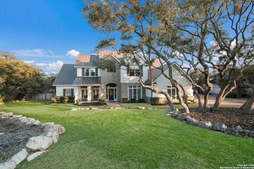 Discover your private hill country retreat set on 1.14 acres right in the heart of Stone Oak! This stunning home offers resort style living with all the conveniences of city life. Step outside to your personal oasis featuring a sparkling pool with an adjoining spa, perfect for relaxing or entertaining. Enjoy summer gatherings under the covered gazebo adjacent to the outdoor kitchen, or unwind on the expansive covered patio and freshly stained concrete patio-ideal for al fresco dining and enjoying those warm San Antonio evenings. Inside, the home boasts 4 spacious bedrooms, 3.5 modern bathrooms, a dedicated study, and a fun gameroom. The fully upgraded kitchen is a chef's dream, featuring high end cabinets, premium appliances with double ovens, gas cooking, a generous island, and a walk-in pantry. Elegant wood and tile flooring flow seamlessly throughout, ensuring a chic, low-maintenance...