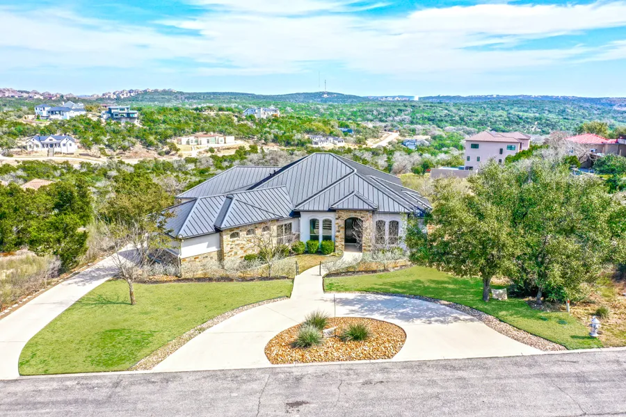 Exquisitely Designed Custom Home located in the prestigious gated and guarded Terra Mont community, this stunning single-story, 4 bedroom, 3.5 bath residence. This contemporary home is bathed in natural light and showcases breathtaking Hill Country views. Elegant design elements include travertine flooring, stone accents, custom blinds, and decorative ceilings. The open-concept layout seamlessly integrates a gourmet kitchen with granite countertops, a gas stove, and a double oven perfect for culinary enthusiasts. Additional features include: Luxurious spa-like bathrooms, wet bar, and office nook, 3 zone A/C system. Expansive covered patio with an outdoor kitchen. Spacious three-car garage. A true masterpiece blending sophistication, comfort, and convenience. offers effortless access to I-10, Loop 1604, La Cantera, The Rim, UTSA, and the Medical Center.