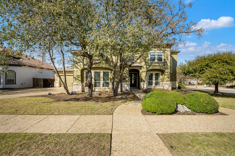 Thoughtfully designed, this home offers a seamless layout that blends luxury and comfort. High-quality craftsmanship is evident throughout, featuring oversized tile, wood floors, custom ceiling details with crown molding, and upgraded lighting. The chef's kitchen is equipped with stainless steel appliances, a gas cooktop, double ovens, a large island, and ample cabinetry, opening to a family room with soaring two-story ceilings. The master suite includes a well-appointed bath and spacious His & Hers walk-in closets. A guest bedroom is conveniently located downstairs, while the remaining well-sized guest bedrooms are upstairs, each offering generous closet space. An oversized game room provides additional living and entertainment space. The outdoor area is a tranquil retreat, complete with mature landscaping, extensive decking, and a sparkling pool and spa-perfect for outdoor entertaining. Additional highlights include a newly replaced roof and an oversized corner lot. Ideally located within the Mesas at Canyon Springs, this home is situated in the highly regarded North East Independent School District.