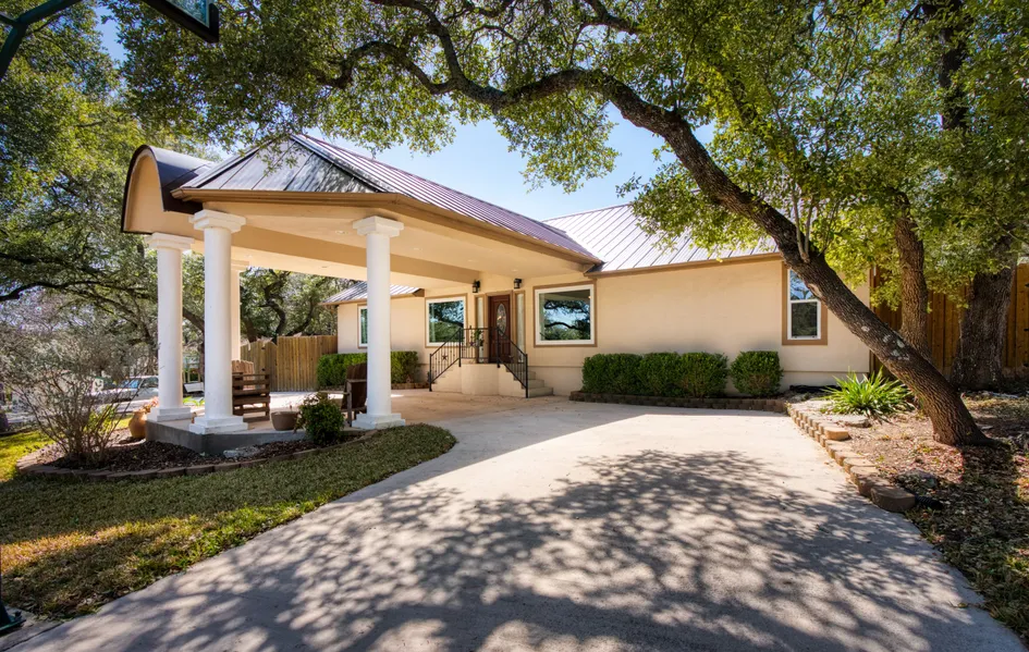 Welcome to this beautiful 3 bedroom, 2 bathroom home, offering a perfect blend of comfort and style. Nestled on a .41 acre lot with mature trees, this property boasts stunning curb appeal with a port-cochere, circular driveway, and ample parking. Inside, you'll find a large living room with picture windows, ideal for entertaining while the updated kitchen features modern finishes, sleek countertops, a breakfast bar, and plenty of storage. The primary suite is a true retreat, showcasing an oversized shower and a freestanding soaking tub in the spa-like bath . Step outside to a large covered patio, perfect for relaxing or hosting gatherings while enjoying the expansive backyard. With its generous lot size and timeless charm, this home is a rare find. A must-see!