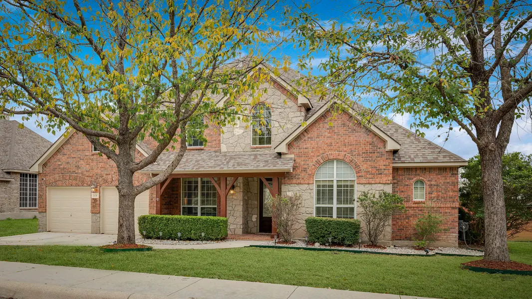 This stunning Highland home, located in the desirable Stonewall Ranch, offers 3,174 sq ft of luxurious living space. Featuring 4 spacious bedrooms and 3.5 baths, this home blends comfort with elegance. The formal dining room is perfect for hosting gatherings, while a private office with glass doors offers a quiet space for work or study. The impressive living room showcases a beautiful wall of windows, filling the space with natural light and a view of the backyard, while a stone fireplace creates a cozy atmosphere. The downstairs boasts soaring 12.5-foot ceilings and an open-concept kitchen designed for both style and functionality, complete with Corian countertops, gas cooking, an island with a breakfast bar, under-cabinet lighting, butler’s pantry, and a charming breakfast nook make this space perfect for daily living. The spacious master suite, located on the main floor and offering a bay window, provides a private retreat with a large walk-in closet, a private water closet, a garden tub, a separate shower, and dual sinks. Upstairs, you'll find 3 additional bedrooms and 2 bathrooms, one of which features an en-suite bath. The loft living area, located on the second floor, offers a versatile space ideal for relaxation or casual gatherings. A covered back porch extends the living space outdoors, providing the perfect setting for evening dinners or relaxing. With its blend of modern amenities, thoughtful design, and prime location in Stonewall Ranch, this home is a wonderful choice for those seeking both comfort and style.