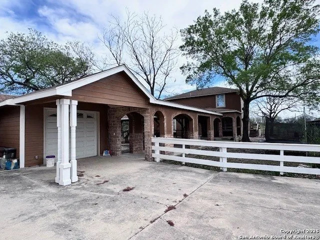 Imagine owning your own farm just under 2 miles from Loop 410! This expansive 4-acre property features three homes, offering endless possibilities. With 16 horse stalls, it's perfect for equestrian enthusiasts or could easily be transformed into a spacious chicken coop. Or turn into monthly rental horse stables. The front of the property is adorned with a charming wrought iron fence, adding to its appeal. While it may need some TLC, the magic of having multiple homes on one lot is undeniable. Picture your family living within walking distance, with no nearby neighbors to worry about. Alternatively, you could use the homes as rental properties or even for Airbnb hosting. The opportunities here are limitless!