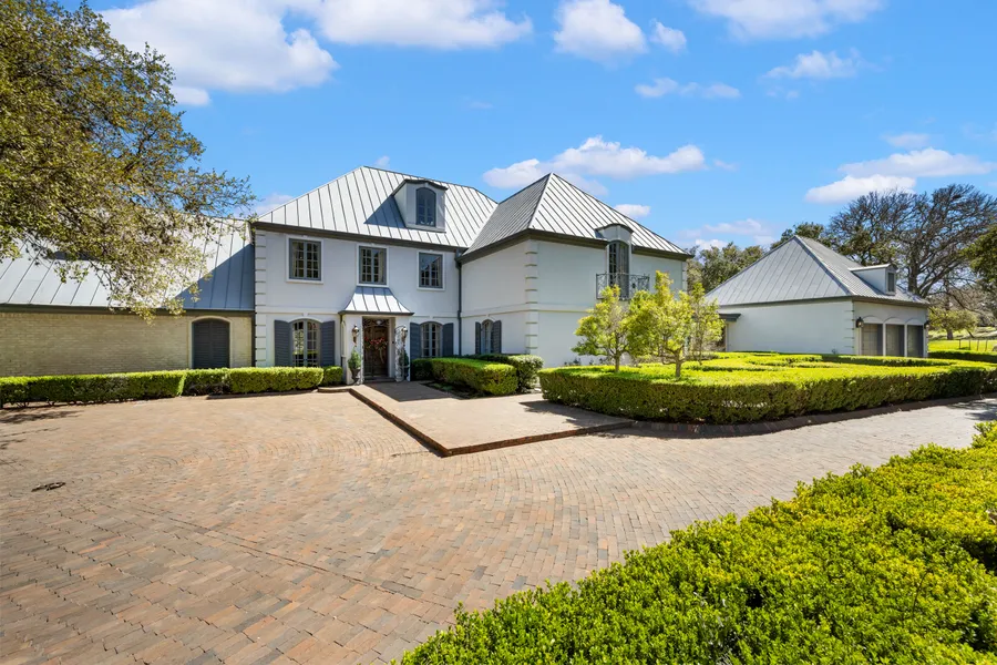 Tucked behind private gates on 6.5 acres of beautifully manicured grounds, this exceptional French-inspired estate offers a rare blend of timeless elegance and modern luxury in an unparalleled location. A winding, tree-lined drive welcomes you, leading past lush gardens and a picturesque 2.5-acre lake, setting the stage for this remarkable residence. Designed with influences from the French countryside, the home boasts soaring ceilings, graceful archways, and expansive windows that frame breathtaking views of the pool and surrounding landscape. Gleaming wood floors anchor the grand living spaces, seamlessly flowing from one room to the next. The formal dining room, illuminated by an intricate chandelier, sits adjacent to a thoughtfully designed island kitchen, perfectly positioned for both everyday living and entertaining. The private owner's wing is a true retreat, featuring a spacious ...