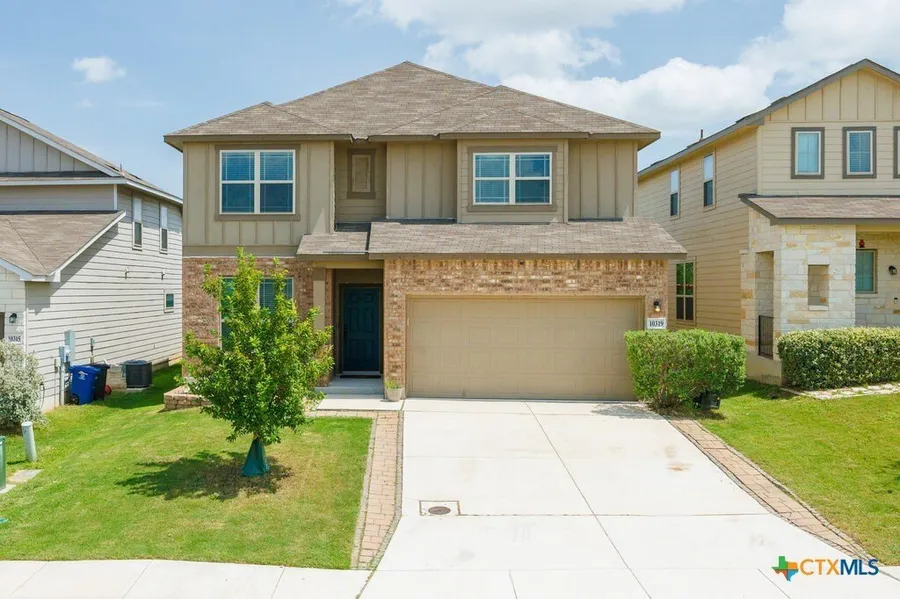 Beautifully decorated 2-story home featuring 4 spacious bedrooms, a study and a gameroom. The open floor plan is enhanced by upgraded lighting fixtures that add a stylish touch throughout. The kitchen boasts granite countertops, stainless steel appliances, and an island with a breakfast bar. Unwind in the primary suite, complete with a garden tub for relaxing soaks. Secondary bedrooms are all sizeable. Cozy up in the living area with a charming mantle and a built-in electric fireplace. Privacy-fenced backyard with a storage shed. Easy access to Loop 1604 and IH-10. Minutes to Randolph AFB, shopping, food and entertainment.
