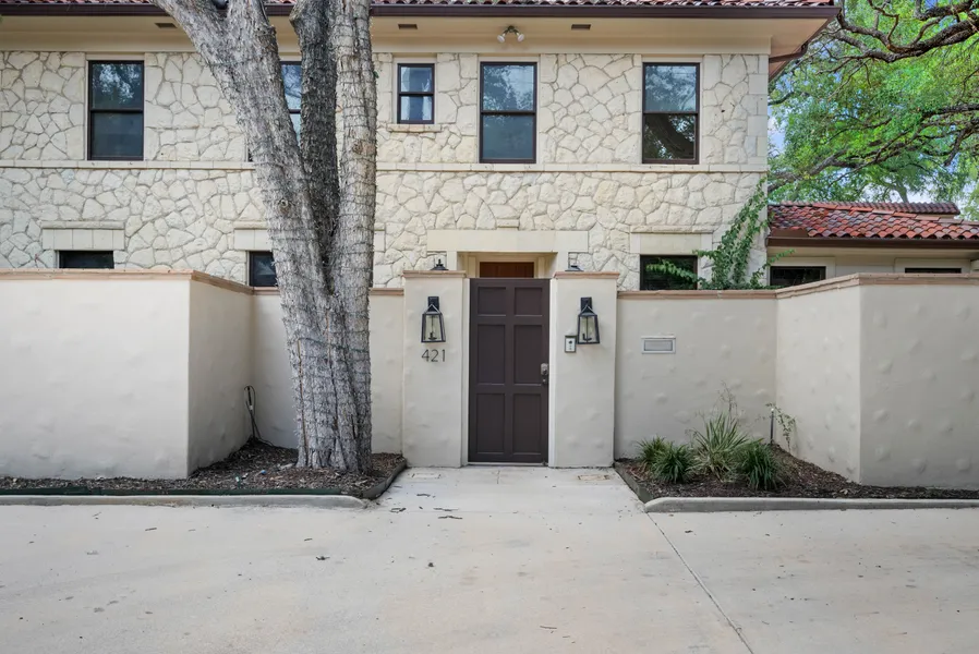 An architectural gem in the heart of San Antonio, this refined residence blends historic charm with the modern sophistication today's luxury buyers expect. The stately 3-bedroom, 2.5-bath main home has been meticulously reimagined with exceptional craftsmanship and is accompanied by two additional living quarters located at the rear of the property. Inside, vaulted ceilings, heirloom-quality finishes, and custom cabinetry create a timeless setting. The chef’s kitchen is both striking and functional, featuring hand-selected stone, high-end fixtures, and seamless cabinetry designed for elevated everyday living. Just off the main living area, a sunroom framed by exposed wooden beams and artisan tile serves as a year-round retreat, ideal for quiet mornings or refined entertaining. The upstairs primary suite offers a private escape, with a sculptural soaking tub, expansive walk-in shower, and custom built-ins that balance luxury with thoughtful design. Outdoor living takes center stage with a deep covered veranda overlooking a professionally landscaped backyard. A cascading waterfall flows into a glistening pool, framed by mature foliage for complete privacy and tranquility. A fully detached two-story guest house completes the estate, featuring two private bedrooms, two full bathrooms, and a full kitchen. Perfect for hosting extended family, accommodating staff, or generating income, this separate residence offers rare flexibility without compromising the integrity of the main home. Situated in a quiet residential enclave just minutes from The Pearl and San Antonio’s cultural corridor, this legacy property in Olmos Park offers timeless architecture, exceptional craftsmanship, and a lifestyle rooted in privacy and prestige.