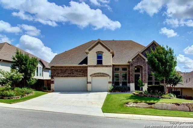 Welcome to this stunning residence nestled in the prestigious gated community of Hastings Ridge at Kinder Ranch. Located in the top-rated Comal ISD, with all schools within walking distance, this home offers both luxury and convenience. This beautifully appointed two-story home offers 4 spacious bedrooms, including dual master suites, 3 full bathrooms, 2 half baths, and a 3-car attached garage. From the moment you arrive, you'll be captivated by the meticulously landscaped front yard featuring lush Zoysia grass, custom planters, and large trees-all maintained by full irrigation for low-maintenance landscaping. Dive into luxury with your own Keith Zars-designed pool featuring dual swim jets and a sun deck-perfect for Texas summers. Enjoy professional landscape lighting for magical evenings, a flagstone pathway, and serene greenery that invites relaxation. Step inside to discover re...