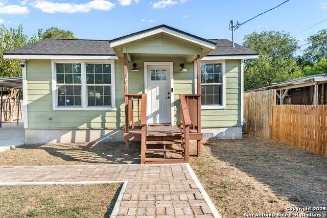 This beautifully updated property features a main home with 2 bed and 1 bath, along with a detached 1 bed, 1 bath unit at the back of the property. The main home offers a bright, open layout with an updated kitchen that includes modern gray cabinetry, subway tile backsplash, stainless steel appliances, marble countertops and gas cooking. The bathroom in the main house has also been remodeled with stylish finishes and a walk-in shower. The detached home is fully equipped with its own kitchen and bathroom with modern updates to include designer backsplash and quartz countertops making it perfect for extended family, guests, or potential rental income. A new air conditioning system was installed in 2021 in both homes, and the property also includes an extended driveway with a gated entrance. A covered carport provides additional parking, while a storage shed adds convenience. This home combines modern updates with flexible living arrangements, offering comfort and versatility, and minutes away from downtown San Antonio.