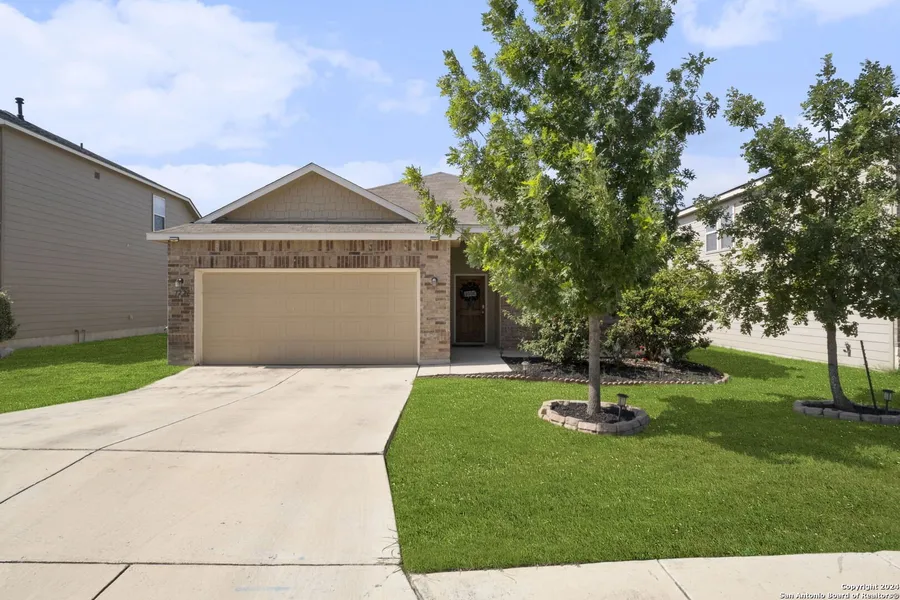 Move in ready single-story three-bedroom, two-bath home in Horizon Point! This bright and spacious residence welcomes you with French doors leading to a versatile front living area perfect for a home office or formal sitting room. The open-concept layout seamlessly connects the large kitchen complete with granite countertops and abundant workspace to the dining area and family room, creating an ideal setting for both entertaining and everyday living. The primary suite is a peaceful retreat featuring a garden tub, separate shower, and private ensuite bath. Two additional generous bedrooms and a full bath provide comfort for family or guests. Step outside to a private backyard with a covered patio and privacy fence, offering the perfect space to unwind. Lovingly maintained, this home is located in a community with great amenities including a pool, playground, and soccer field. Enjoy quick access to I-10, Loop 1604, Randolph AFB, shopping, and highly rated schools-this home truly has it all!