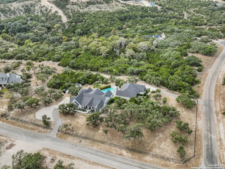Welcome to 1032 Clear Water in Helotes, Texas. This remarkable property offers the perfect blend of modern luxury, comfort, and functionality on two beautifully fenced acres. The main home features tall vaulted ceilings and a spacious open floor plan that connects the large living room and chef's kitchen. The kitchen includes Bosch appliances, granite countertops, a reverse osmosis system, and plenty of cabinet and counter space, making it ideal for both everyday living and entertaining. The primary suite is a private retreat with a separate shower, soaking tub, double vanity, and a walk-in closet. Additional rooms include a media room, home office, and a flexible extra room that works perfectly as a gym or playroom. This home is equipped with top-of-the-line features such as a Kinetico water system, tankless water heater, epoxy garage flooring with overhead storage, security cameras, and fiber internet. The 1000-pound propane tank supports both outdoor kitchens, while the aerobic septic system and professional landscaping complete the property's efficiency and curb appeal. Step outside to your personal resort. The covered patio features Koolcrete flooring, exterior speakers, and a full outdoor kitchen overlooking the stunning Blue Haven pool with a heating system. A second outdoor kitchen extends your entertainment space, offering plenty of room for gatherings with friends and family. The guest house adds even more flexibility with its own living room, kitchen, two bedrooms, and another covered patio with an outdoor kitchen, perfect for guests or multi-generational living. Located in Helotes, a peaceful and highly sought-after area just minutes from San Antonio, this property combines privacy, sophistication, and convenience. Experience the very best of Texas Hill Country living at 1032 Clear Water. Schedule your private tour today.