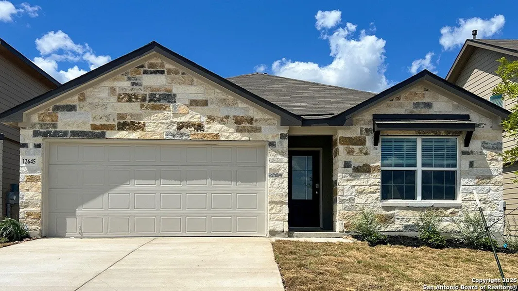 The Bryant is a stunning single-story home featured at Avenida in Converse, TX. The Bryant is sure to impress with its selection of 3 front exteriors, 4 bedrooms, 2 bathrooms and 2-car garage. Welcome guests as they walk through the elongated foyer with a decorative nook wall feature to the spacious eat-in kitchen. Facing the blended dining area and living room, the kitchen includes an oversized island, corner pantry with shelving, plenty of cabinet storage, quartz countertops, stylish subway tile backsplash, stainless steel appliances, and a gas cooking range. The private main bedroom is located at the back of the house and features a relaxing ensuite bathroom complete with double vanities, a garden tub, walk-in shower, and a spacious walk-in closet. If privacy is your top priority, this bathroom comes standard with a separate water closet. Two secondary bedrooms are located off the ent...
