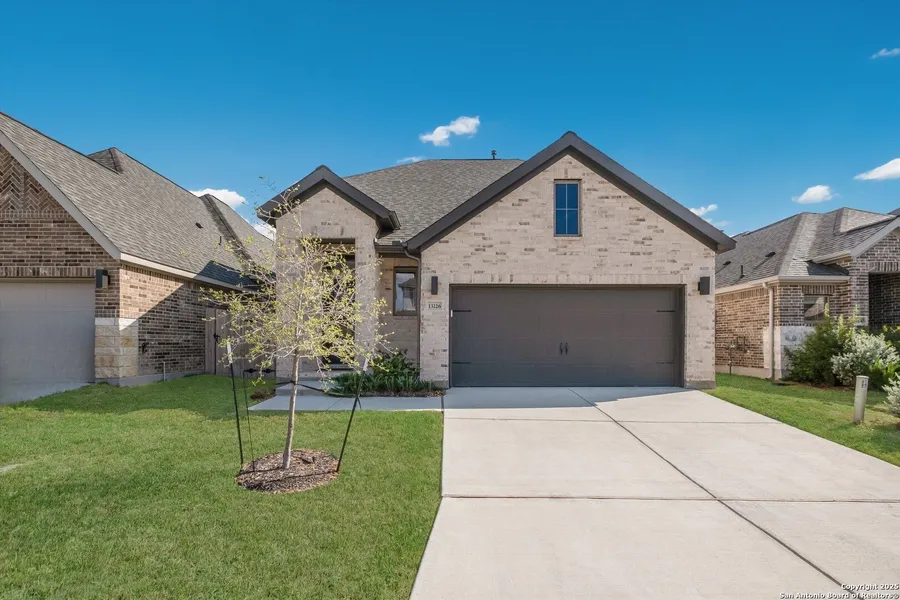 Step into this stunning Perry home located in the highly desirable Veranda subdivision. This thoughtfully designed residence boasts an open-concept layout, perfect for both everyday living and entertaining. The kitchen is a chef's dream, featuring sleek quartz countertops, an expansive island, stainless steel appliances, and gas cooking. The wood-like tile flooring throughout adds elegance and durability. Retreat to the oversized primary bedroom, your personal sanctuary, with an en-suite that includes a spacious stand-up shower and double vanity. Two secondary bedrooms on the main floor provide versatility, while an additional bedroom and game room upstairs create endless possibilities. Enjoy Texas evenings on the covered patio, overlooking a beautifully maintained yard enhanced by a sprinkler system. Modern conveniences like a tankless water heater ensure comfort and efficiency. Located within the top-rated Northside School District, this home offers exceptional education options. This is where your next chapter begins!