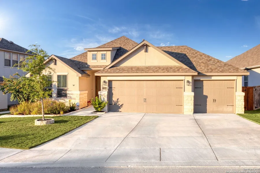 Just Listed! Step inside this stunning 4-bedroom, 3-bath home that feels brand new. Soaring tall ceilings create an open, airy feel throughout, while the thoughtfully designed layout includes a private guest suite perfect for visitors or multi-generational living. The gourmet kitchen shines with a stunning quartz island, a large single-basin sink, and an open layout that flows seamlessly into the living area for easy entertaining. Enjoy endless hot showers with your tankless water heater, including water softener, and a full sprinkler system. The spacious 3-car garage provides plenty of storage, and the beautiful patio is ideal for relaxing evenings or entertaining outdoors. Schedule your showing TODAY!!