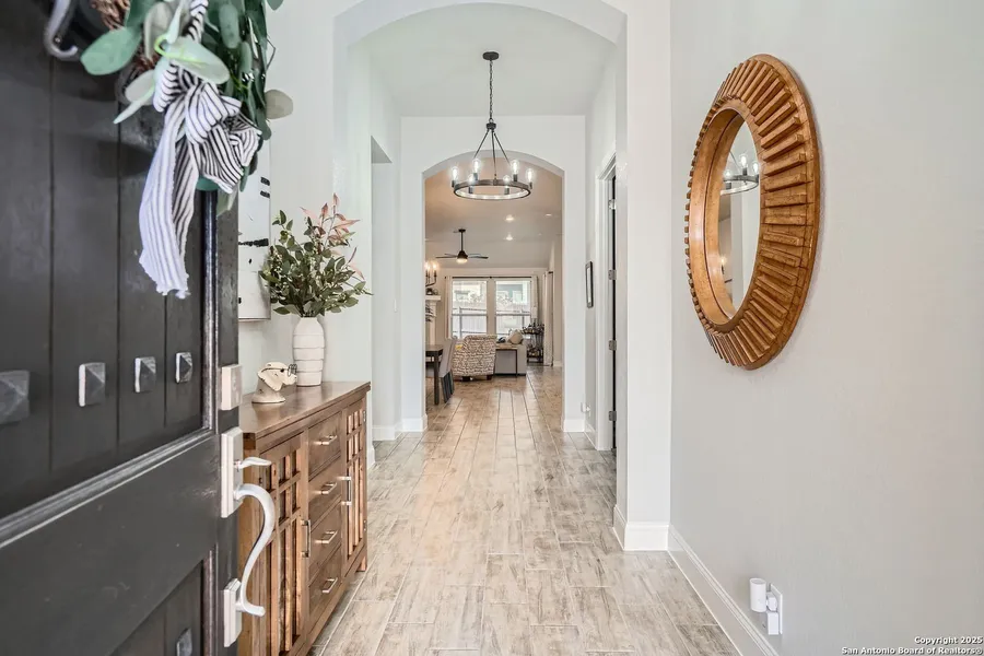 This move-in ready, meticulously maintained 3,033 SqFt single story Highland Homes design in Fronterra at Westpointe demonstrates the owner's commitment to both aesthetics and functionality. The freshly painted interior, including ceilings, creates a pristine canvas, while new light fixtures throughout add contemporary polish. The residence's open layout creates natural flow between the island kitchen, where a gas cooktop and stainless steel appliances await the home chef, and a welcoming family room anchored by a corner fireplace. Recent upgrades extend the ceramic tile from main living areas into the office and bedrooms, creating seamless visual continuity. The media room and primary bedroom closets feature new premium-grade carpet, adding comfort underfoot in these spaces. The primary suite stands out with its generous proportions and sophisticated bathroom featuring dual vanities con...