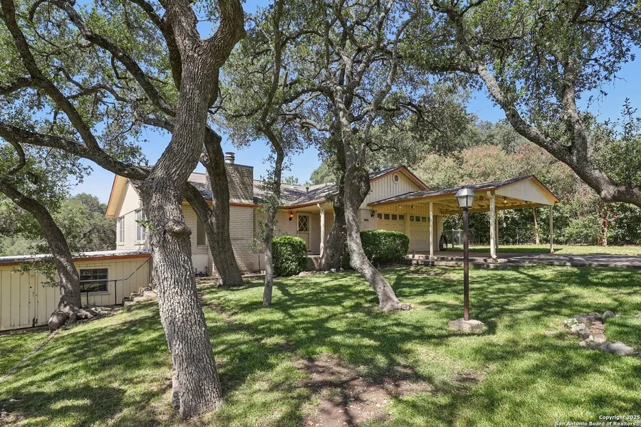 Discover this incredible .86-acre property in the highly sought-after Hills and Dales community. This single-story ranch-style home is a true gem, ready for its next chapter. Step inside to find two inviting living areas-one cozy with a wood-burning fireplace and updated double-pane windows that flood the space with natural light. The second living area, with its durable laminate flooring, offers flexible space perfect for a large dining room or den. The spacious kitchen provides ample storage with a convenient added buffet, making meal prep a breeze. All four bedrooms are generously sized with ceiling fans and good closet space, including a private primary suite with two closets and an en-suite bathroom. Outside, relax on the long covered porch and enjoy the serene, private acreage. The property is fully fenced, with an additional chain-link fence perfect for a small yard or pet area. This home is an outdoor enthusiast's dream, featuring a two-car garage, a two-car carport, and a large workshop with electricity and water. Enjoy the feel of the Texas Hill Country with the convenience of city living. Located just minutes from I-10, Loop 1604, The RIM, La Cantera, UTSA, and major employers like Valero Energy and USAA.