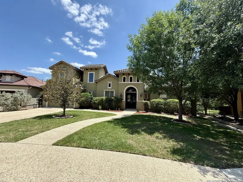 Stunning 4-Bedroom Home in The Gardens at Graystone - 3,455 Sq Ft! This beautifully maintained 3,455 sq ft home, built in 2013, offers 4 bedrooms (2 downstairs, 2 upstairs), a spacious game room, and a dedicated office. No carpet-featuring elegant wood, bamboo, and ceramic tile flooring throughout. The living area showcases a striking stone-surround fireplace, and the gourmet kitchen includes a large granite island, 42" staggered cabinets, custom ceiling beams, and plantation shutters. Enjoy breathtaking greenbelt views from the covered patio and wraparound deck. Additional highlights include a formal dining room, open floor plan, and high-end finishes throughout. Located in the desirable NEISD school district and conveniently close to shopping, dining, and major highways. HOA is only $800/year. Move-in ready and full of charm-this home is a must-see!
