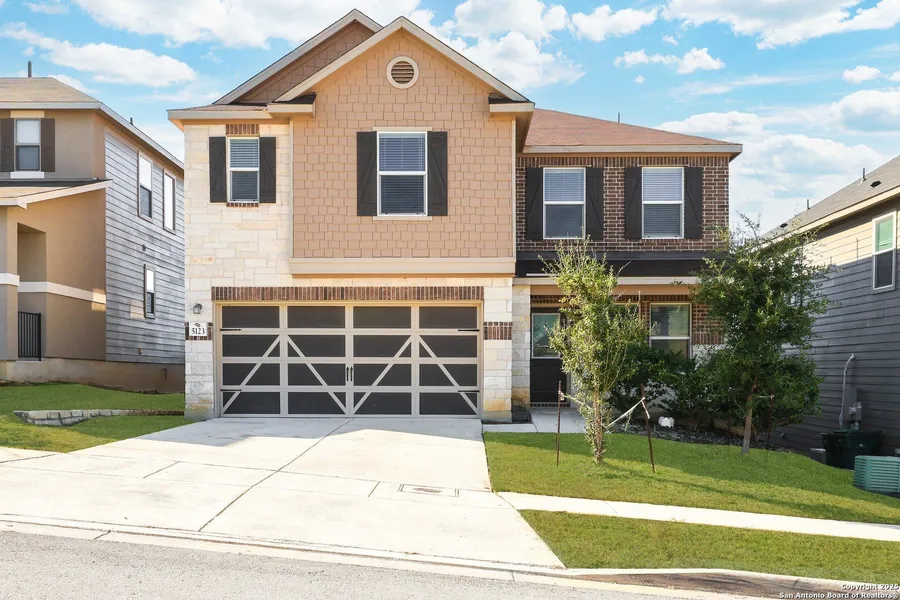 Available now!! This inviting two-story home blends comfort, function, and style. Step inside to a functional open layout filled with natural light, where the spacious living area flows seamlessly into a modern kitchen featuring 42" custom cabinetry, granite countertops, an upgraded subway tile backsplash, and gas cooking perfect for everyday living or entertaining. Connected to the kitchen by a butler's pantry is an open dining space, or enjoy your coffee in the sun-filled breakfast nook overlooking the spacious backyard. A private office with French doors on the main level provides the ideal space for working from home or quiet study time. Upstairs, the primary suite offers a peaceful retreat with a huge walk-in shower and dual vanities. You'll also find three secondary bedrooms and a versatile loft area ideal for a TV room, play space, or gaming. Conveniently located near schools, shopping, and a short commute to Randolph AFB, this home offers both comfort and accessibility.
